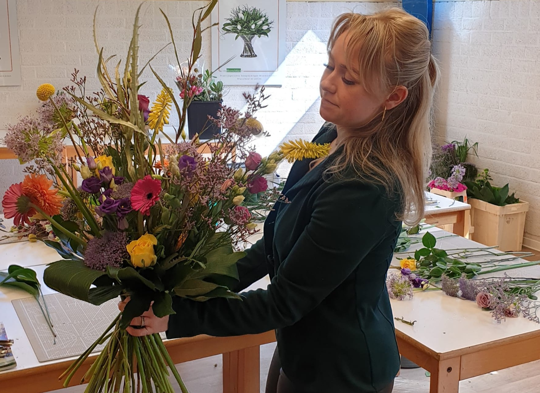 Op die manier worden wij ook elke keer weer blij wanneer we iemand vakkundig mogen opleiden tot professioneel bloembinder of bloemist winkelier. Elke week komen onze leerlingen blij binnen, omdat ze weer lekker met bloemen aan de slag mogen. Aan het eind van de dag gaan ze weer minstens net zo blij naar huis, omdat ze weer veel hebben bijgeleerd.